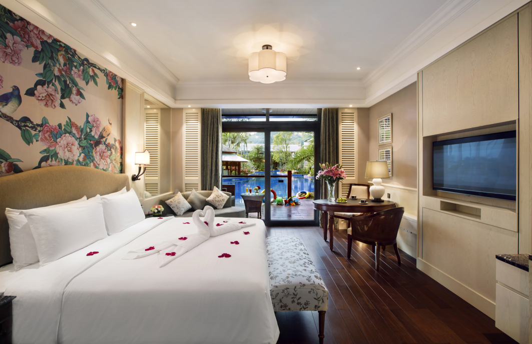 厦门海悦山庄酒店占地100万平方米,直面大海全景,独拥青山峡谷。山庄区域50万平方米园林一步一景,有小桥、流水、奇石、池塘、草坪、湖泊,更有20000多株乔木,共400多珍稀品种。厦门海悦山庄酒店客房设计承袭鼓浪屿老别墅豪宅风格,在开放式阳台,可尽览山海园林、俯视中庭花园泳池;床品卫浴都采用了一流的品牌。中西各式餐厅菜品丰富,还有酒廊、红酒屋、酒窖、雪茄吧等。香茶宫中餐厅有6个开放式厨房的自助餐厅,更有大堂吧、天悦阁酒廊及名厨主理的爵士西餐厅等。